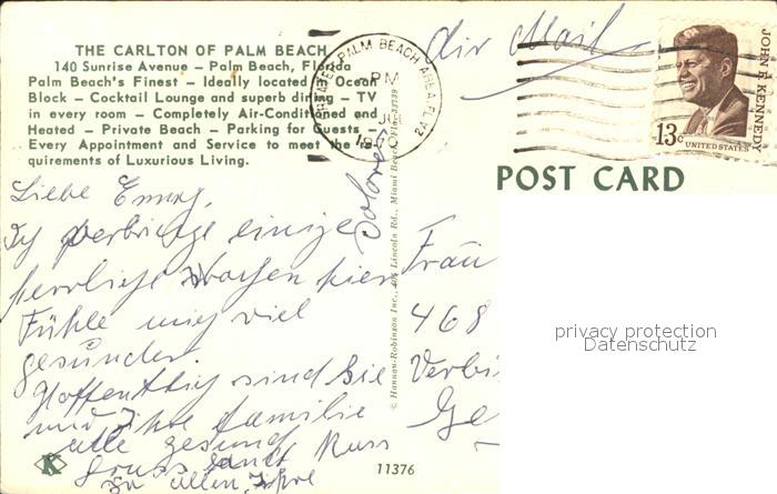 71955911 old postcard Palm Beach The Carlton of Palm Beach postalisch gelaufen Erhaltung siehe scans KatCode: 14140110000000