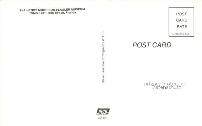72408939 Palm Beach the Henry Morrison Flagler Museum postalisch nicht gelaufen Erhaltung siehe scans KatCode: 14140110000000