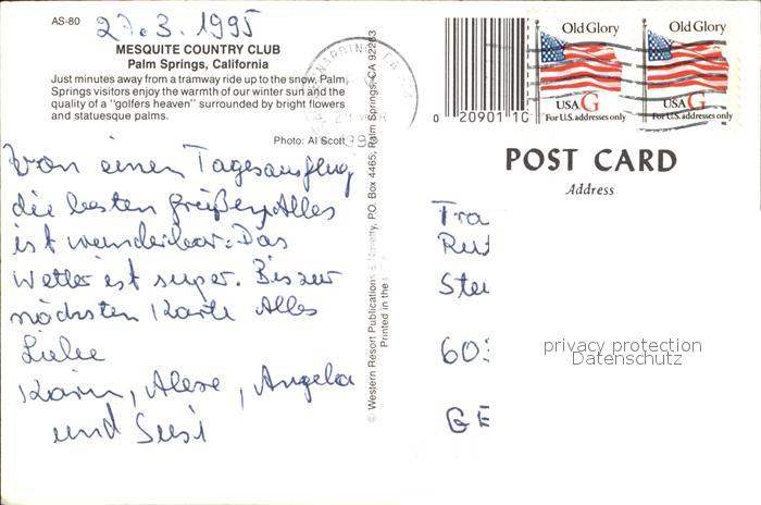 72486725 old postcard Palm Springs Mesquite Country Club postalisch gelaufen Erhaltung siehe scans KatCode: 14140050000000