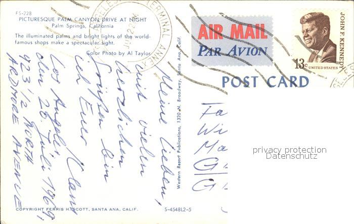 72375972 old postcard Palm Springs Palm Canyon Drive at Night postalisch gelaufen Erhaltung siehe scans KatCode: 14140050000000