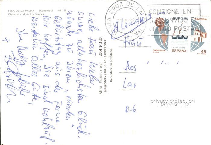 old postcard Palma Canarias La Los Sauces postalisch gelaufen Erhaltung siehe scans