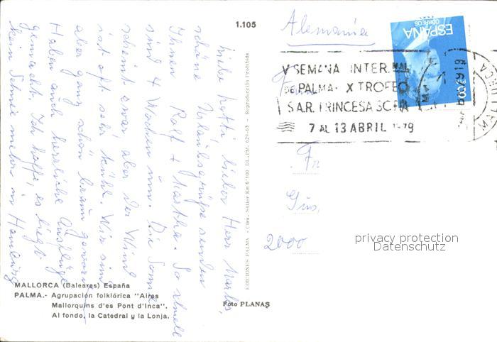 old postcard Palma de Mallorca Agrupacion folklorica Aires postalisch gelaufen Erhaltung siehe scans