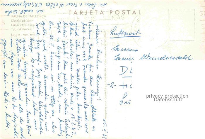 74153504 old postcard Palma de Mallorca ES Danzas típicas postalisch gelaufen Erhaltung siehe scans [FriedD77] KatCode: 11510