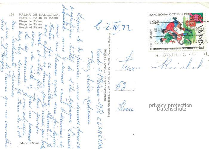 74100755 old postcard Palma de Mallorca ES Hotel Taurus Park Swimming Pool postalisch gelaufen Erhaltung siehe scans [FriedD77] KatCode: 11510