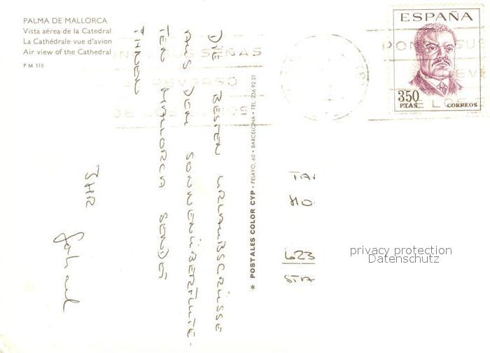 old postcard Palma de Mallorca Fliegeraufnahme Kathedrale postalisch gelaufen Erhaltung siehe scans [KathaD81]