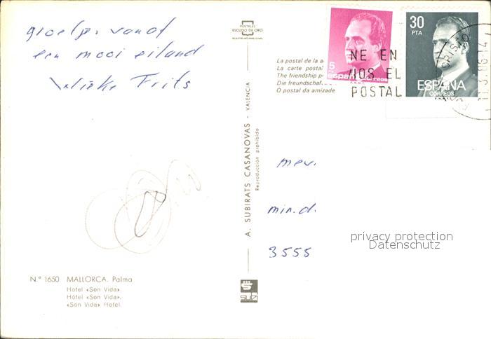 old postcard Palma de Mallorca Hote Son Vida postalisch gelaufen Erhaltung siehe scans