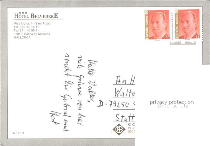old postcard Palma de Mallorca Hotel Belvedere postalisch gelaufen Erhaltung siehe scans