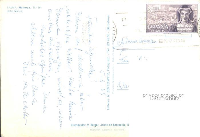 old postcard Palma de Mallorca Hotel Madrid postalisch gelaufen Erhaltung siehe scans