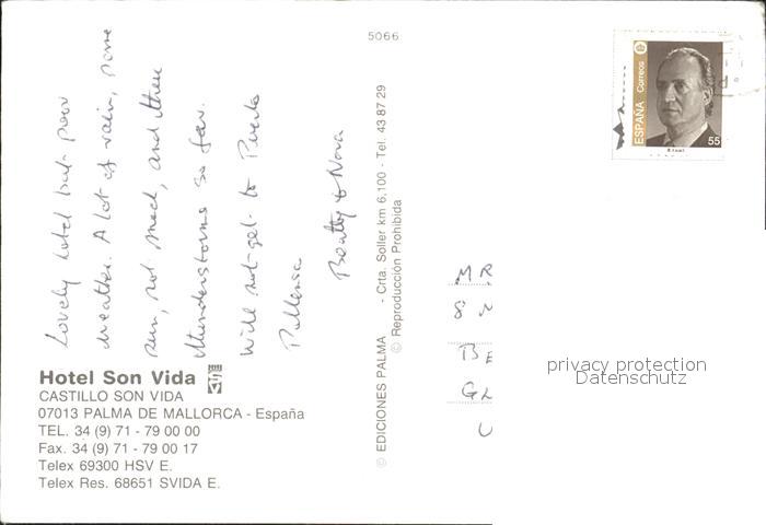 old postcard Palma de Mallorca Hotel Son Vida postalisch gelaufen Erhaltung siehe scans