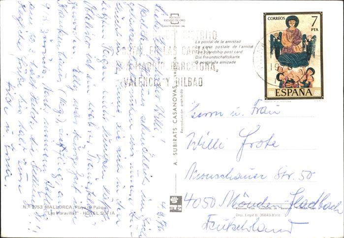 old postcard Palma de Mallorca Las Maravillas Hotel Sofia Playa de Palma Swimming Pool postalisch gelaufen Erhaltung siehe scans
