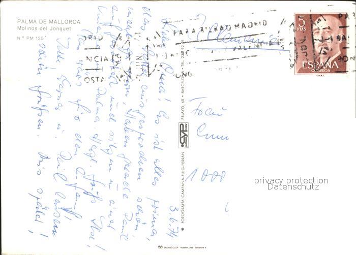 old postcard Palma de Mallorca Molineos del Jonquet postalisch gelaufen Erhaltung siehe scans
