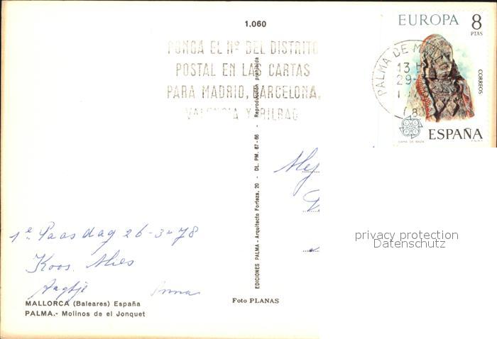 old postcard Palma de Mallorca Molinos de el Jonquet postalisch gelaufen Erhaltung siehe scans