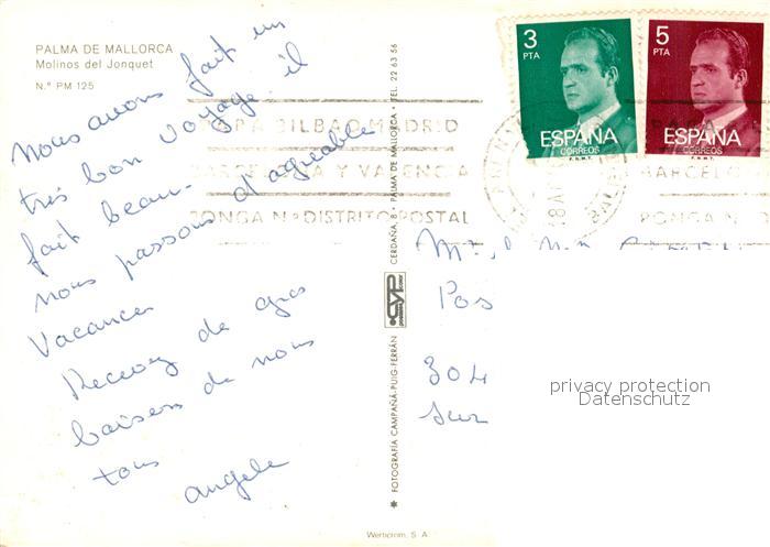 old postcard Palma de Mallorca Molinos del Jonquet postalisch gelaufen Erhaltung siehe scans [FriedD77]
