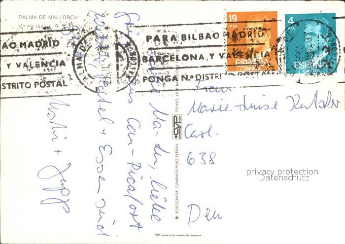 old postcard Palma de Mallorca Panorama Hafen Palmenallee Windmuehlen postalisch gelaufen Erhaltung siehe scans
