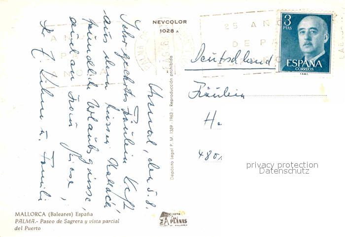 old postcard Palma de Mallorca Paseo de Sagrera postalisch gelaufen Erhaltung siehe scans [LiesaD40]