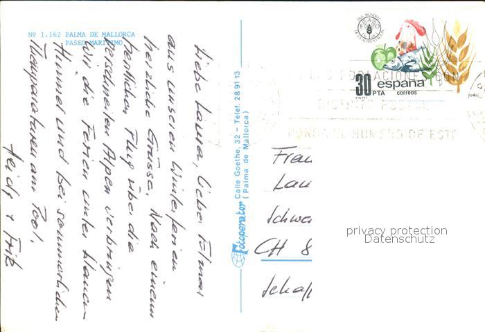 old postcard Palma de Mallorca Paseo Maritimo postalisch gelaufen Erhaltung siehe scans [AndreD76]