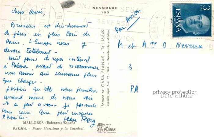 old postcard Palma de Mallorca Paseo Maritimo y la Catedral postalisch gelaufen Erhaltung siehe scans [LiesaD40]