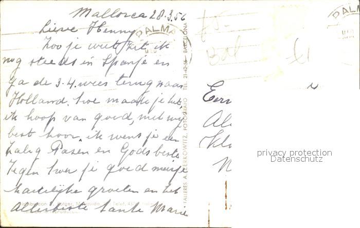 old postcard Palma de Mallorca Paseo Sagrera postalisch gelaufen Erhaltung siehe scans