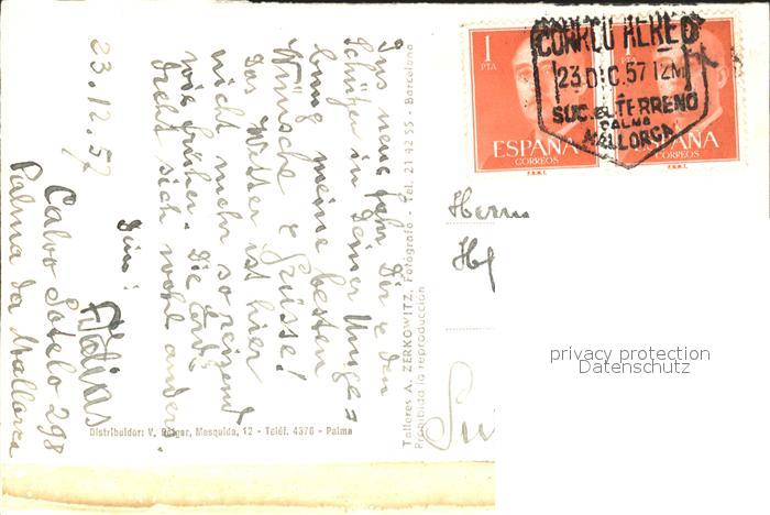old postcard Palma de Mallorca Plaza de Cort postalisch gelaufen Erhaltung siehe scans