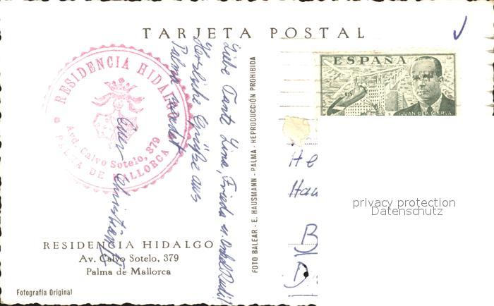 old postcard Palma de Mallorca Residencia Hidalgo Calvo Sotelo postalisch gelaufen Erhaltung siehe scans