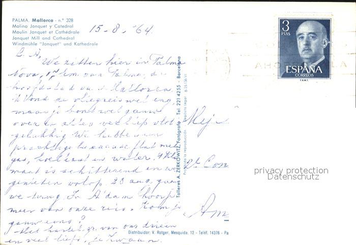 old postcard Palma de Mallorca Windmuehle Jonquet und Kathedrala postalisch gelaufen Erhaltung siehe scans