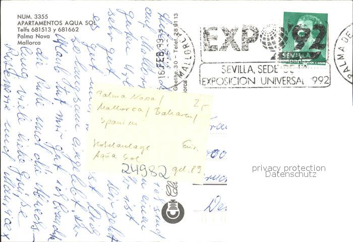 old postcard Palma Nova Mallorca Apartamentos Aqua Sol Swimmingpool postalisch gelaufen Erhaltung siehe scans