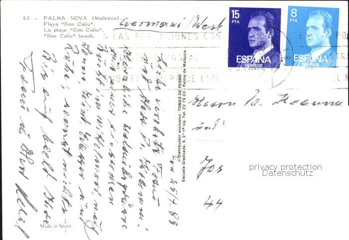 old postcard Palma Nova Mallorca Hotel Son Caliu Playa Strand Kueste postalisch gelaufen Erhaltung siehe scans