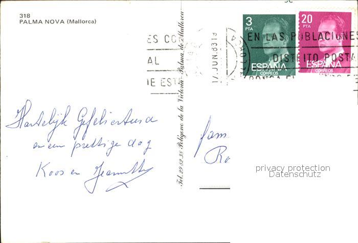 old postcard Palma Nova Mallorca Strand Panorama Kueste postalisch gelaufen Erhaltung siehe scans