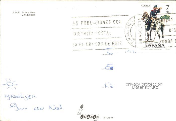 old postcard Palma Nova Mallorca Uferpromenade Hotelanlagen postalisch gelaufen Erhaltung siehe scans