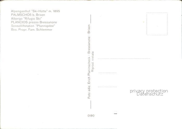 Palmschoss Alpengasthof Skihuette Dolomiten Sesselliftstation Pfannspitze Alpenflora postalisch nicht gelaufen Erhaltung siehe scans