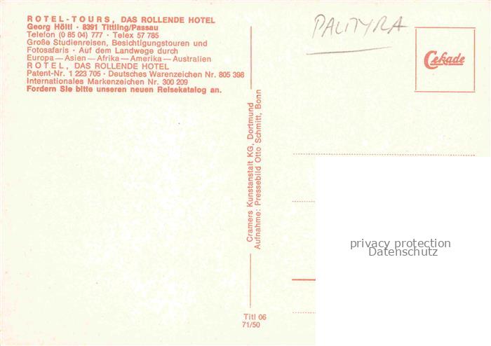 74116509 Palmyra Palmyre Syria Rotel Tours Das rollende Hotel postalisch nicht gelaufen Erhaltung siehe scans [WerneD78] KatCode: 13170