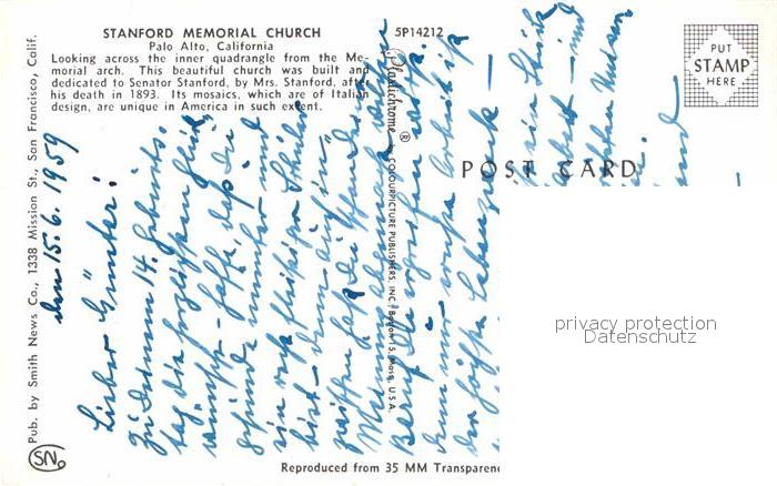 72850447 Palo Alto Stanford Memorial Church postalisch nicht gelaufen Erhaltung siehe scans [LiesaD40] KatCode: 14140050000000