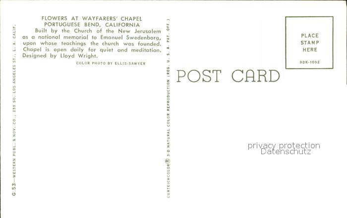 72486561 Palos Verdes Peninsula Flowers Wayfarer Chapel Portuguese Bend postalisch nicht gelaufen Erhaltung siehe scans KatCode: 14140050000000