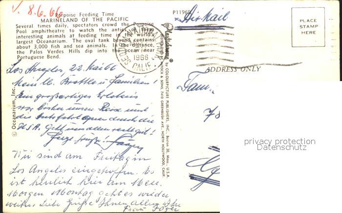 11693850 old postcard Palos Verdes Peninsula Oceanarium Marineland of the Pacific postalisch gelaufen Erhaltung siehe scans KatCode: 14140050000000