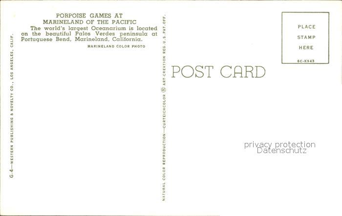72458253 Palos Verdes Peninsula Porpoise Games Marineland Pacific postalisch nicht gelaufen Erhaltung siehe scans KatCode: 14140050000000