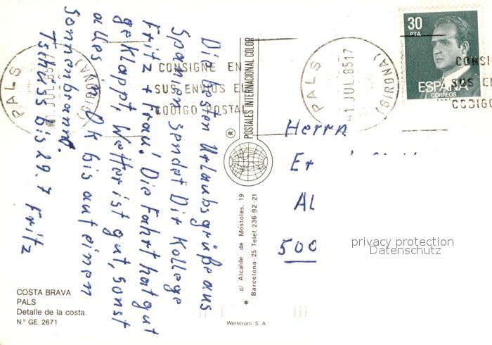 old postcard Pals Detalle de la costa Playa postalisch gelaufen Erhaltung siehe scans [FriedD77]