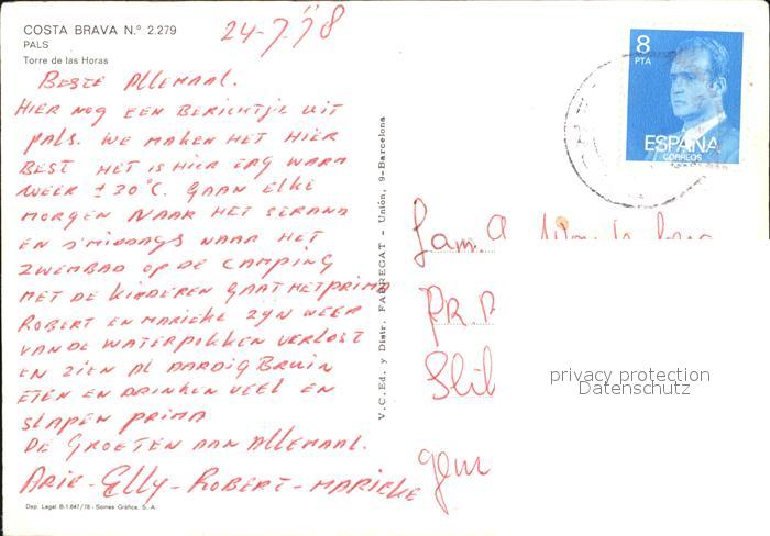 old postcard Pals Torre de las Horas postalisch gelaufen Erhaltung siehe scans