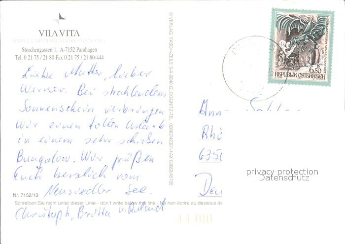 71914368 alte Postkarte Pamhagen Hotel und Feriendorf Pannonia Vila Vita postalisch gelaufen Erhaltung siehe scans KatCode: 11390112010716