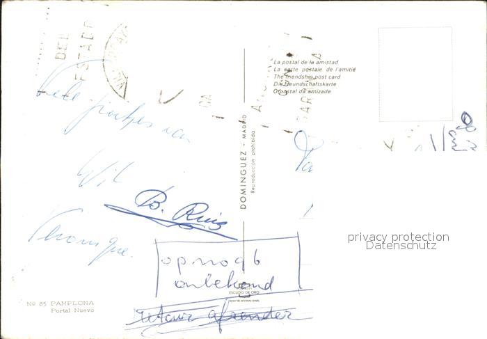 old postcard Pamplona Navarra Portal Nuevo postalisch gelaufen Erhaltung siehe scans [LiesaD40]