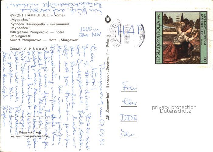 old postcard Pamporovo Pamporowo Hotel Murgawez postalisch gelaufen Erhaltung siehe scans