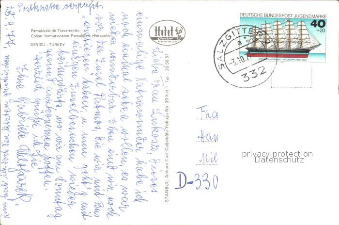 old postcard Pamukkale Denizli Travertenler postalisch gelaufen