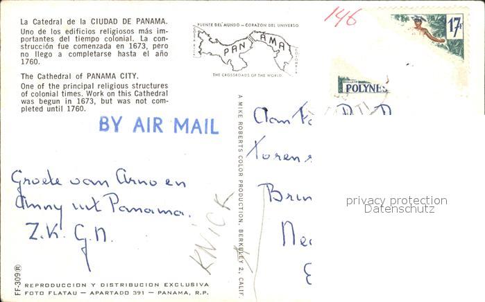 alte Postkarte Panama Cathedral postalisch gelaufen Erhaltung siehe scans