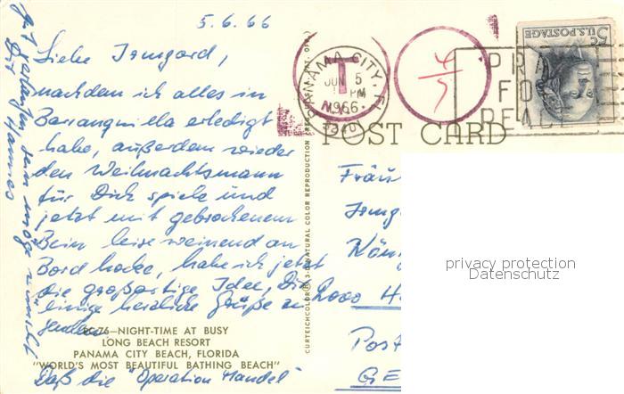 73764073 old postcard Panama City Beach Night Time at busy Long Beach Resort postalisch gelaufen Erhaltung siehe scans [WerneD78] KatCode: 14140110000000