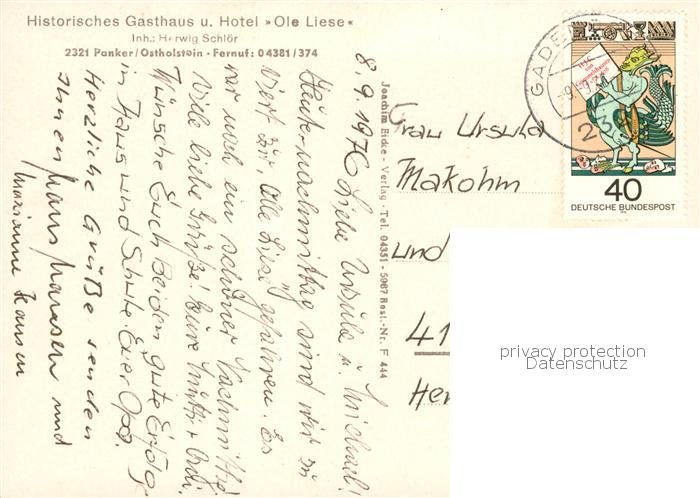 73844608 alte Postkarte Panker Historisches Gasthaus Hotel Ole Liese Gastraeume Treppenaufgang postalisch gelaufen Erhaltung siehe scans [FriedD77] KatCode: 11110001057055