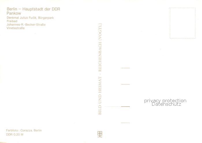 73127239 Pankow Buergerpark Freibad Johannes-R. Becher Strasse Vinetastrasse Denkmal Julius Fucik postalisch nicht gelaufen Erhaltung siehe scans [LiesaD40] KatCode: 11110011000000