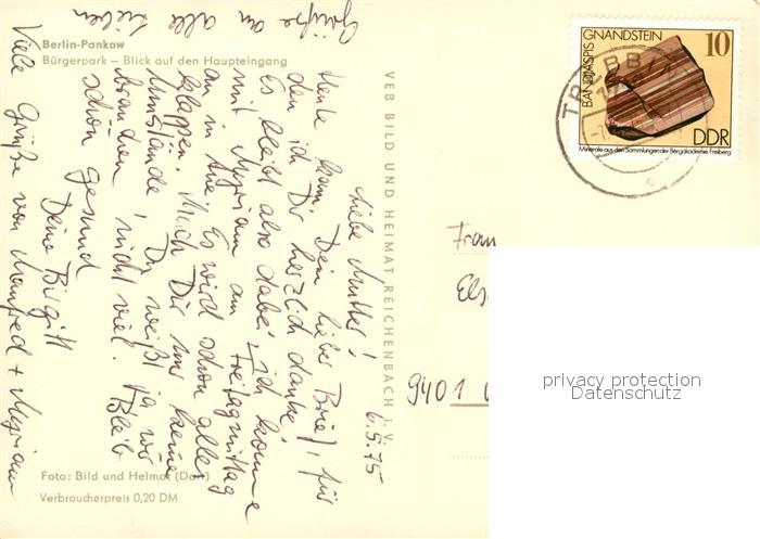 73044879 alte Postkarte Pankow Buergerpark Haupteingang postalisch gelaufen Erhaltung siehe scans [WerneD78] KatCode: 11110011000000