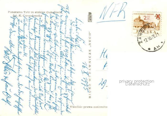 73018974 old postcard Panorama City Tatr ze stokow Gubalowki postalisch gelaufen Erhaltung siehe scans [WerneD78] KatCode: 14140050000000