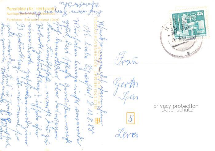 73813522 alte Postkarte Pansfelde HOG Gartenhaus Gastraeume postalisch gelaufen Erhaltung siehe scans [WerneD78] KatCode: 11110015085110
