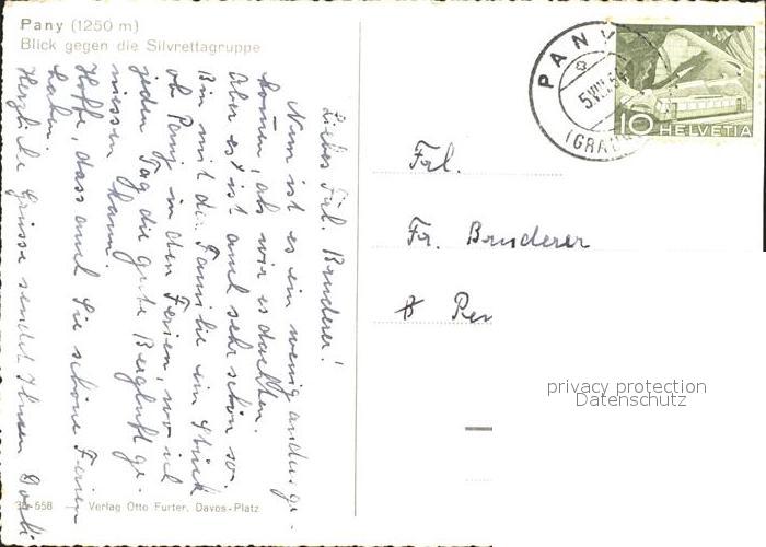11645338 alte Postkarte Pany Silvrettagruppe postalisch gelaufen Erhaltung siehe scans KatCode: 11470100350388