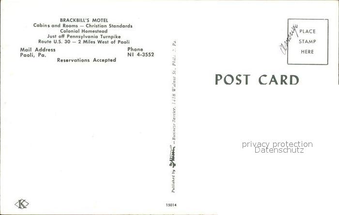 71859194 old postcard Paoli Pennsylvania Brackbills Motel postalisch gelaufen KatCode: 14140410000000